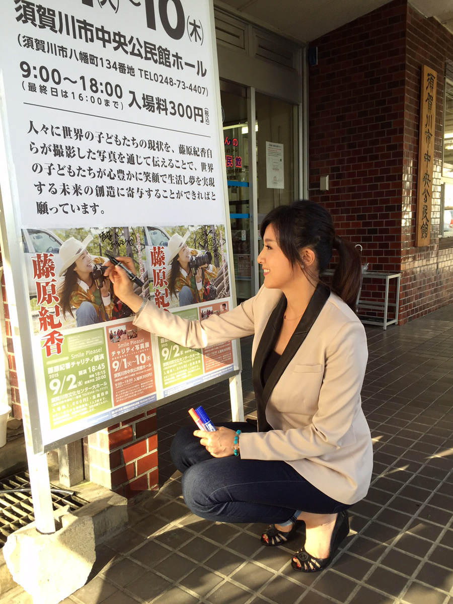 2015.9.1 福島県須賀川市さま主催の講演会、チャリティー写真展 2015.09.01●チャリティーイベント 福島県須賀川市さま主催で、須賀川市中央公民館ホールにて、チャリティ写真展(9月1日~10日)を開催しました。 須賀川市文化センター 大ホール(2015年9月2日)で講演会を行いました。 初めての被災地開催でしたが、講演会には1200人もの方が聞きにきてくださいました。 本人のブログでも報告させていただきました!